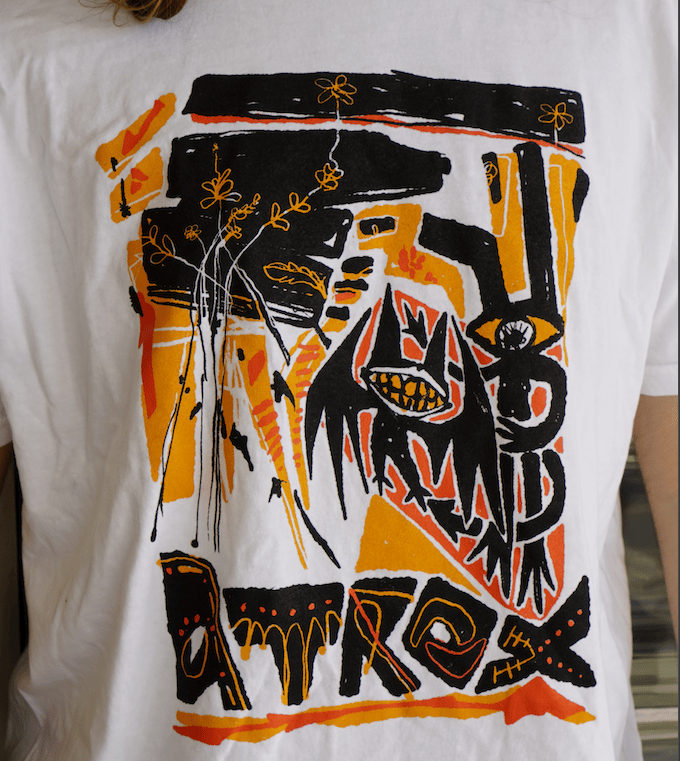 customer designed graphic, screen-printed by hand on comfort color blanks